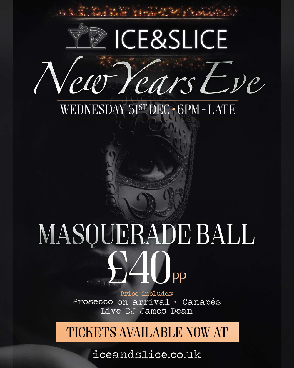 Step into a night of mystery, music, and celebration as Ice & Slice transforms into a dazzling masquerade ball to welcome 2026 in style.